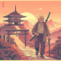 A weary traveler grips his Katana not as a weapon but as a walking stick on a long journey. Each step brings him closer to his goal. Finally, when he arrives at the temple gate, he plants the katana in the ground to mark that he has "arrived"; his heart swells knowing he was able ToReach his destination.