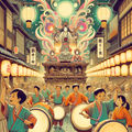 Below the float, priests lift lanterns painted with the Month, Moon, its glow trembling like flesh under a strike.