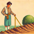 Hedge Along the Soil path, a gardener measures the full Span with twine to train a neat living hedge.