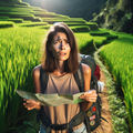 On a dark road, a traveler carrying a sack of rice wanders off-course, going Astray. In old Japan, rice was so valuable that losing track of it on the road meant both hunger and disaster, a fitting image of being lost.